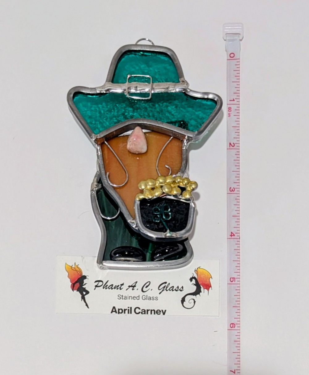 Lucky Gnome Leprechaun – Leaded Stained Glass Suncatcher